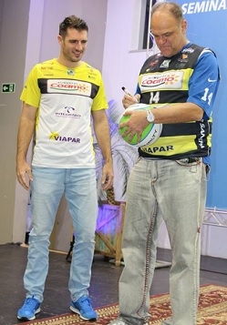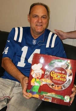 Oscar Schmidt, o ex-astro do basquete, veio a Campo Mourão nesta segunda-feira para ministrar palestra e não voltou para casa de mãos vazias, não. Da prefeitura, recebeu o kit da Festa Nacional do Carneiro no Buraco. De jogadores do Campo Mourão Basquete, recebeu (e vestiu no ato) camisa do time mourãoense. Ah, um "povo bom e hospitaleiro" não ia deixar de mãos abanando justo o "Mão Santa", né?...
