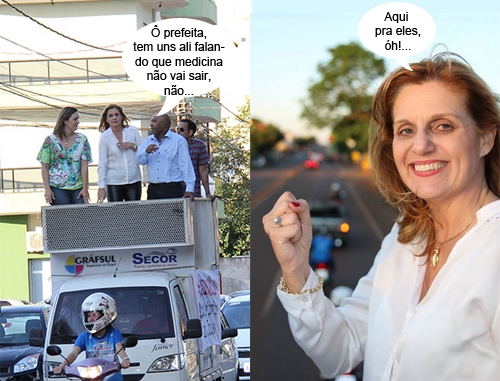 Os cliques são de sexta-feira, quando aconteceu a carreata para comemorar a liberação do curso de medicina para Campo Mourão. A prefeita Regina Dubay e os secretários Karla Tureck (Educação) e Márcio Alencar (Saúde) vieram sobre o carro de som. Repare que Regina comemorou como se tivesse marcado um goooooooool...