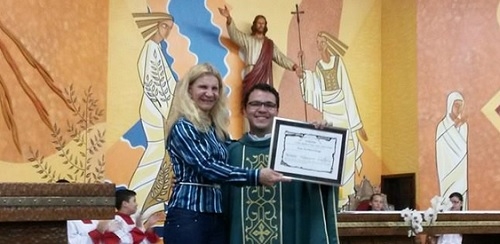 Lembra que a Câmara de Campo Mourão aprovou moção à paróquia Nossa Senhora do Caravagio, do Lar Paraná? Pois olha aí a vereadora Nelita Piacentini fazendo a entrega da homenagem. Foi durante a missa deste sábado, com direito a discurso e tudo. A paróquia foi homenageada pela passagem de seu cinquentenário. E que fique claro: a moção foi aprovada por unanimidade. Portanto, sem castigo divino pra ninguém...