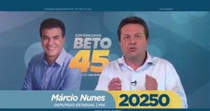 O candidato a deputado estadual Márcio Nunes (PSC) é mais um deputável de Campo Mourão que já apareceu no horário eleitoral da tevê pedindo voto. A exemplo de Douglas Fabrício (PPS) e Marla Tureck (PSD), Nunes também apareceu falando com o governador Beto Richa (PSDB) ao fundo. Ou seja, deputado eleito tem que fiscalizar o governador, mas na campanha parece que é ao contrário...