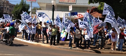 Para quem estava com saudade dos bandeiraços de campanha nas esquinas do calçadão, no centro de Campo Mourão, teve um desses neste sábado, em frente ao HSBC. Foi da campanha do deputável Márcio Nunes. Faltando um mês para a eleição, enfim a cidade ganhou cara de período eleitoral, com placas por todo o centro, carros de som pra lá e pra cá e agora até bandeiraço. Faltam 29 dias...