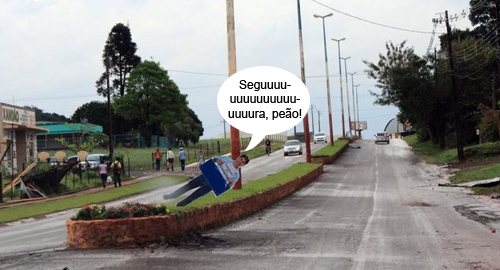 O clic vem de Campina da Lagoa, onde também ventou forte nesta terça-feira. A ventania não perdoou nem o "flyer" de um candidato a deputado, colocado sobre o canteiro central. O "boneco" ficou desse jeito aí. Ô dureza...