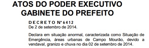 Olha aí, se o decreto da chuvarada de junho demorou dois meses, esse do granizo saiu rapidinho, rapidinho...
