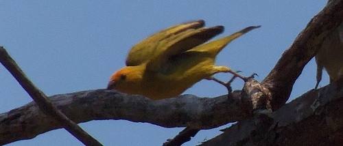 "Um canário terra verdadeiro (macho) alçando voo. Foto feita no Clube dos 30, estrada velha para Farol".