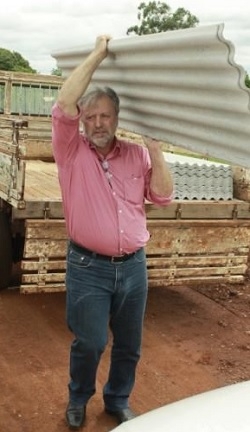 E olha aí, até o prefeito Bento Batista esteve por lá e ajudou a descarregar o eternit.