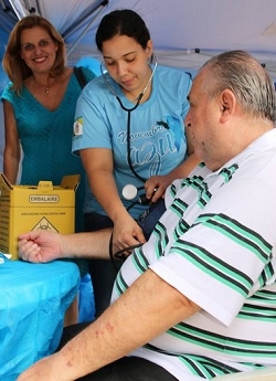 Começou nesta segundona, no calçadão, a campanha Novembro Azul, que visa a atenção à saúde do homem. Foram montadas barracas no local para exames rápidos e orientações. E olha só quem apareceu pra conferir a pressão arterial, o ex-prefeito Augustinho Vecchi. E foi examinado sob o olhar atento da prefeita Regina Dubay, que estava por ali vendo a abertura dos trabalhos. E cá pra nós, depois de mais uma campanha eleitoral, melhor por os exames em dia mesmo...