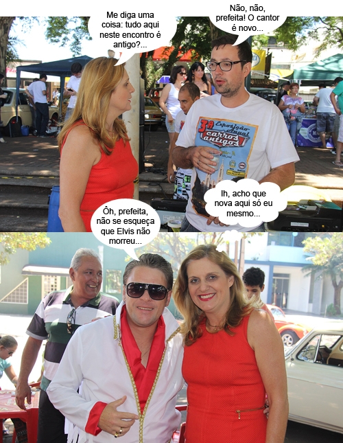 Os cliques são deste domingo, na praça São José, onde o Antigomobismo de Campo Mourão promoveu o 3.o Encontro de Carros Antigos. A prefeita Regina Dubay esteve por lá, conferiu as relíquias, conversou com colecionadores e organizadores e fez tietagem com o cantor oficial do evento, Fausto Jacques, o "Elvis Presley mourãoense".