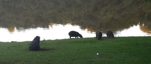 "Capivaras passeando tranquilas, neste domingo, no Parque do Lago". Raoni de Assis