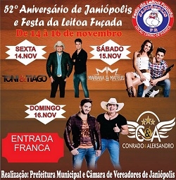 Começa nesta sexta-feira a festa em comemoração ao 52º aniversário de Janiópolis.