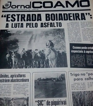 O Jornal Coamo completa 40 anos em novembro. Por isso mesmo a edição do mês vai lembrar um pouco desses quatro décadas. Mexendo nos arquivos, olha só o que o assessor de imprensa da cooperativa, Ilivaldo Duarte, foi achar: a manchete de junho de 1985 fala sobre a luta pelo asfalto da Estrada Boiadeira. Ah, digamos que "a luta continua"...
