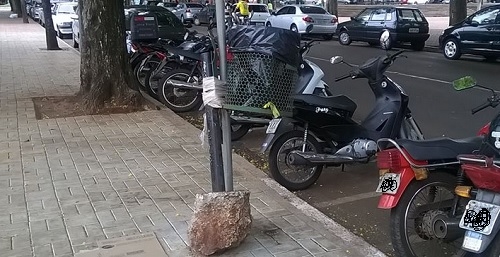 Apesar de a qualidade do paver estar "sob júdice", visualmente dá pra afirmar, sem medo de errar, que o calçadão de Campo Mourão está ficando mais bonito. Na quadra entre as ruas Brasil e Harrison José Borges, no entanto, ainda tem lixeira assim, amarrada a placa de trânsito. Ah, mas que tem lixeira, tem!...