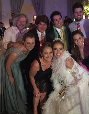 O clic é da festa de casamento da atriz Thaís Pacholek com o cantor Bruno Belutti, da dupla Marcos & Belutti, nesta terça-feira, em São Paulo. E olha só quem está ali no cantinho esquerdo: o mantenedor da faculdade Unicampo, Renato Pacholek. Ele não entrou de bicão, não, afinal, é tio da noiva. Graças à sobrinha famosa, o mourãoense já participou até de programa do SBT junto com a atriz. E ô noivinha feia, hein?...