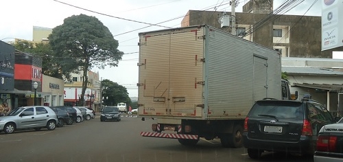 "Foto desta sexta-feira, às 13h47. Local: Rua Harrison José Borges, próximo à av. Manoel Mendes de Camargo. Caminhão estacionado na diagonal é surpreendente. Claro que não "atrapalha" em nada..." Carlos