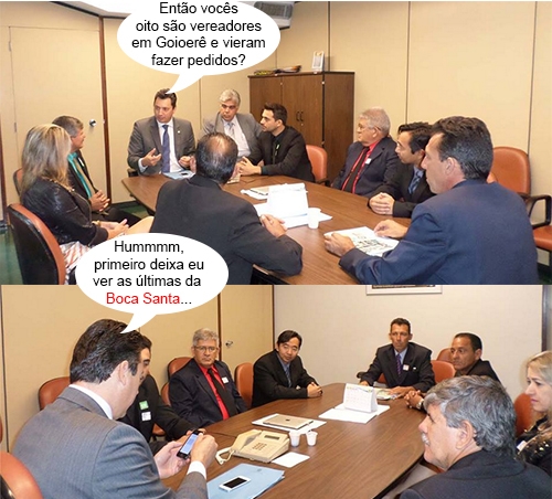 Os cliques são de Brasília, onde oito dos nove vereadores de Goioerê estiveram durante a semana. Eles visitaram senadores e deputados federais, sempre fazendo suas reivindicações. As fotos são da audiência com o deputado Sérgio Souza (aquele que foi senador quando Gleisi Hoffmann virou ministra).
