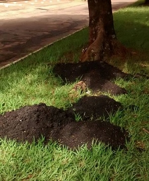 O que é isso? Um disco-voador pousou no meio da rua Clementino Farago, no jardim Três Marias? Parece, não parece? Seja o que for, a equipe da Codusa esteve por lá e tapou o buracão.