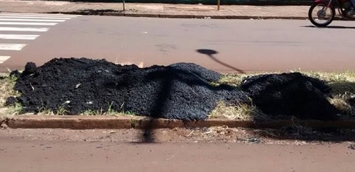 "Se não bastassem os móveis que a população deposita nos canteiros centrais, ainda temos resíduos de recapeamentos. A Codusa, por ser adminstrada pela prefeitura, deveria dar o exemplo. A foto é da av. Goioerê, esquina com rua Guarapuava".