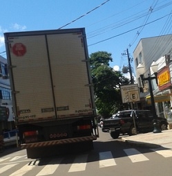 "Nesta terça-feira à tarde, caminhão maior que aquele que matou o idoso, no centro, ficou estacionado a 50 metros da prefeitura".