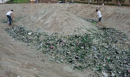 Acredite: essa aí é a pista de skate do Lago Municipal de Campina da Lagoa. O clic feito nesta quinta-feira mostra o "efeito réveillon". É que na hora da virada, o locutor deu a dica para que as garrafas de champanhe fossem quebradas na pista, evitando cacos pelo gramado ou pelas ruas, o que tornaria mais fácil a limpeza. Ai-aiai-aiai! Os skatistas devem ter adorado...