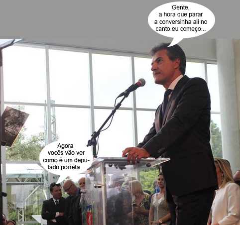 Olha aí mais um clique da posse do segundo mandato do governador Beto Richa. Enquanto ele discursa, ali no canto o deputado estadual eleito Márcio Nunes aproveita para colocar a conversa em dia com o deputado Luiz Cláudio Romanelli.