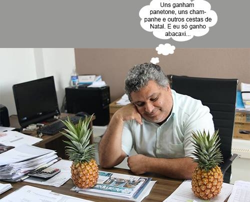 Quem disse que fim de ano é época de se ganhar panetone, champanhe ou cestas de Natal? O coordenador geral da prefeitura de Campo Mourão, Carlos Augusto Garcia, ganhou mesmo dois abacaxis. Mais dois, digamos assim. Ah, quem precisa de amigo grego, hein?...