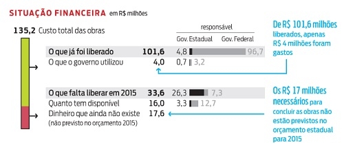 Pra complicar, segundo o jornal, a conclusão das obras depende de R$ 17 milhões do governo estadual que não foram nem previstos no orçamento.
