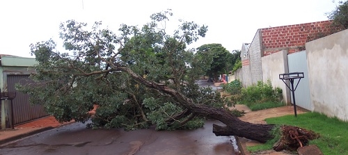 "Chuva forte arranca árvore no conjunto Diamante Azul, em Campo Mourão". Maria Alves