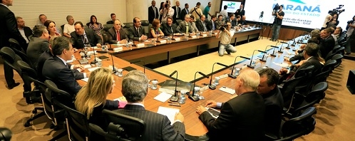 O governador Beto Richa fez nesta quarta-feira a primeira reunião com o secretariado deste que assumiu o segundo mandato.