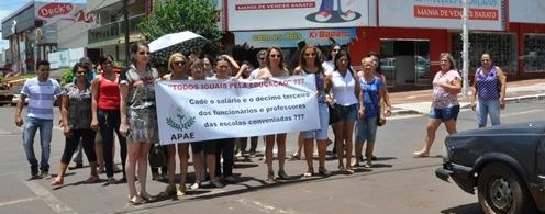 Funcionários da Apae de Goioerê fizeram protesto nesta quarta-feira no centro da cidade.