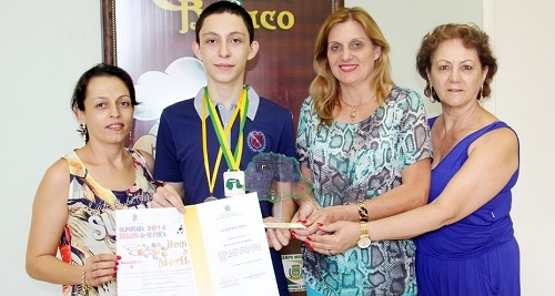 Matheus estava acompanhado pela mãe, Sandra Cristina de Lima, e pela pedagoga do colégio, Cleire Matilde. Matheus também conquistou Medalha de Bronze na Olimpíada Brasileira de Química.