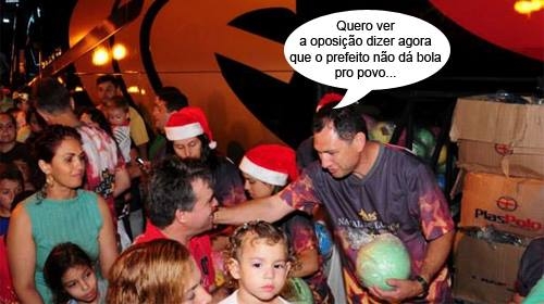O Papai Noel chegou de ônibus em Mamborê. Nada de problema com o trenó. Foi apenas uma parceria com o Expresso Nordeste. Assim, não teve só bala, não. As crianças receberam brinquedos e houve até sorteio de cinco bicicletas. O prefeito Nei Calori ajudou na distribuição de bolas e bonecas. Hô, hô hô!...