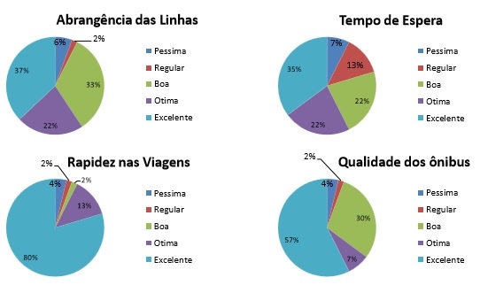 Para 64%, a qualidade dos ônibus é ótima ou excelente, contra apenas 6% que dissseram que os busões são péssimos.