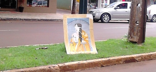 "Até tu, Atena, abandonada num canteiro central? A foto é na av. Manoel Mendes de Camargo, centro de Campo Mourão. Absurdo, não é?" Eriton