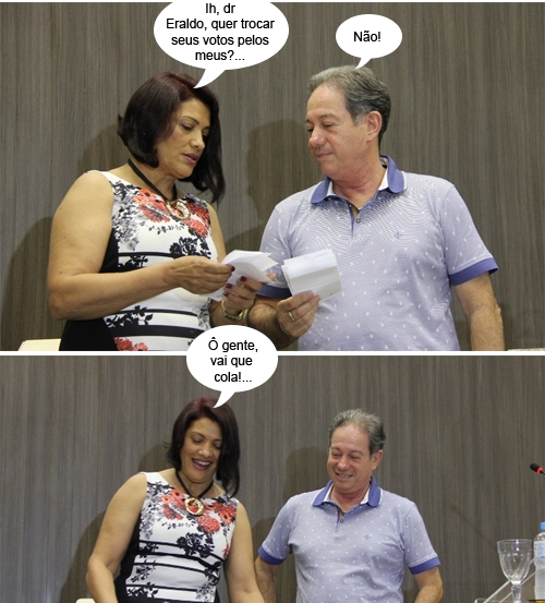 Os cliques são da sessão da Câmara desta terça-feira, quando Eraldo Teodoro foi eleito presidente com oito votos, contra quatro da Professora Vilma. A pedido do presidente Toninho Machado, os dois candidatos ficaram responsáveis pela contagem dos votos. Ah, assim nem precisa fiscal, né?...