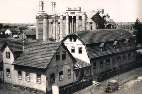 A foto é do acervo do Museu Municipal de Campo Mourão. Ao fundo, a Catedral São José aparece ainda em construção. Em primeiro plano, o antigo colégio Santa Cruz, todo de madeira, onde hoje fica a praça São José. No sábado, dia 14, fez 65 anos que chegaram a Campo Mourão as três primeiras freiras que deram origem à escola vicentina.