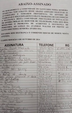 O vereador Jorge Pereira diz que não foi à toa ver a construção da lombada em frente ao Santuário de Aparecida. Foi porque é o autor da indicação (leia-se pedido feito à prefeitura). No Facebook, Pereira colocou até o número da indicação - 1.632/2014 -, protocolada dia 21 de outubro do ano passado. Ele lembra que anexou ao pedido um abaixo-assinado com mais de 600 assinaturas. Todo mundo cobrando uma lombadinha no local. Portanto, foi ao estilo do saudoso vereador Júlio Vieira: "dócumentado"...