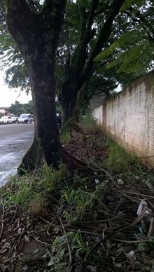 "E a responsabilidade de quem é? Veja a situação da calçada na esquina da rua Devete de Paula Xavier com a av. Goioerê".