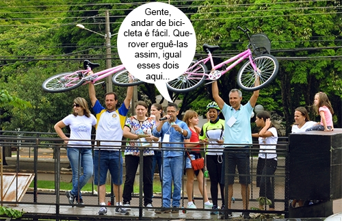 O clic é deste domingo, quando aconteceu a 1ª Pedalada Internacional da Mulher, promovida pelo Conselho da Mulher Empresária da Acicam, em comoração ao "dia delas". O percurso foi entre os supermercados Carreira e Paraná Família. Na chegada, o presidente da Acicam, Newton Leal, e o vice-presidente Paula César Costa ergueram as bicicletas que foram sorteadas. Ah, só faltou a voz do He-Man: "Pelos poderes da Acicam, eu tenho a força!"...