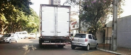 "Caminhão ficou por cinco minutos parado em fila dupla na rua Harrison José Borges, por volta das 8h50 de sexta-feira". Luiz