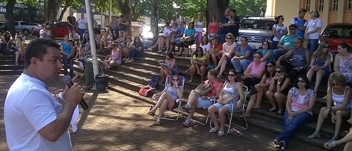 Professores estaduais de Campo Mourão mantiveram a greve nesta quinta-feira e se concentraram na praça São José.