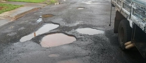 "Rodovia que liga Campina da Lagoa a Altamira do Paraná. São 30 km que se fazia em 20 minutos. Agora o tempo gasto é de 45 minutos. Azar de quem passar mal". (Foto enviada por internauta)