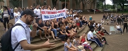 É para receber as assinaturas do professores interessados em ir à assembleia estadual de Curitiba, na segunda-feira.
