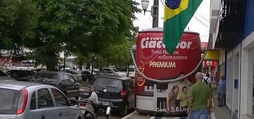 "Na av. Capitão Índio Bandeira, loja fez propaganda diferente, com um galão gigante de tinta. Chamou a atenção. Pena que ocupou quase toda a calçada e complicou a vida dos pedestres".