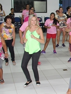 Teve sessões de dança zumba, nesta sexta-feira, no Centro da Juventude. Tudo dentro da programação pelo Dia Internacional da Mulher (8 de março). Integrantes de clubes de mães participaram. A secretária-filha Anelise Dubay (Mulher e Ação Social) também. Ah, não basta ser secretária, tem que dançar...