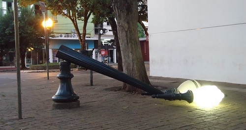 "Foto deste domingo, às 7h, de mais um ato de vandalismo que vem se repetindo na cidade. O que leva uma pessoa a fazer isso? Revolta, intolerância, se aparecer para o grupo? Trata-se com certeza de um desequilibrado, mas quebrar a vidraça de sua casa, arrebentar o portão ou porta de onde mora, duvido que faça isso..." Sidney Casarin
