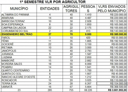 Engenheiro Beltrão é a cidade da região que mais recebe recursos do programa Compra Direta.