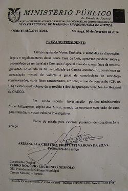A promotora Arisângela Cristina Vargas da Silva enviou ofício à Câmara sugerindo a criação de uma "comissão especial".
