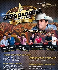Barbosa Ferraz - Começa nesta quinta-feira e segue até domingo a Expo Barbosa 2013 Rodeio Show. O evento acontece no recinto de festas da Amiagro. A programação inclui shows musicais e rodeio. A abertura tem a dupla Léo & Giba. O rodeio terá narração de Giovany Araújo. A promoção é privada e a entrada é paga.