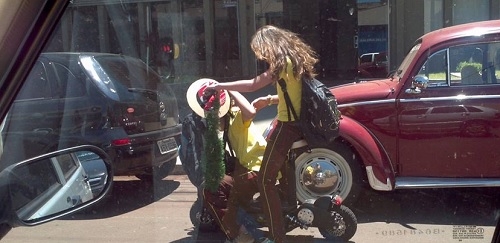 O flagrante foi feito pelo vereador Edson Battilani e mostra estudante de patinete elétrico, em Campo Mourão, dando carona para uma amiga, ou seja, risco em dobro.