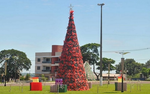 Árvore de Natal colocada no início da av. Mauro Mori, em Goioerê. A iluminação natalina foi acesa nesta sexta-feira.