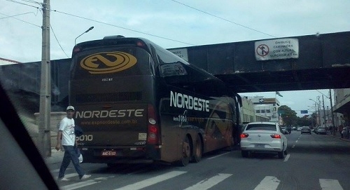 Um ônibus do expresso Nordeste ficou entalado na Ponte Preta, no centro de Curitiba. Foi nesta sexta-feira, por volta das 18h. O clic foi postado no perfil "XV Curitiba" (Facebook). A ponte faz parte do patrimônio histórico de Curitiba e só permite a passagem de veículos com até 3,6 metros de altura. No mais, a gente torce pra que a "Ponte Preta" segure o Lanús, da Argentina, na final da Copa Sul-Americana, e não busão de Campo Mourão, né?...